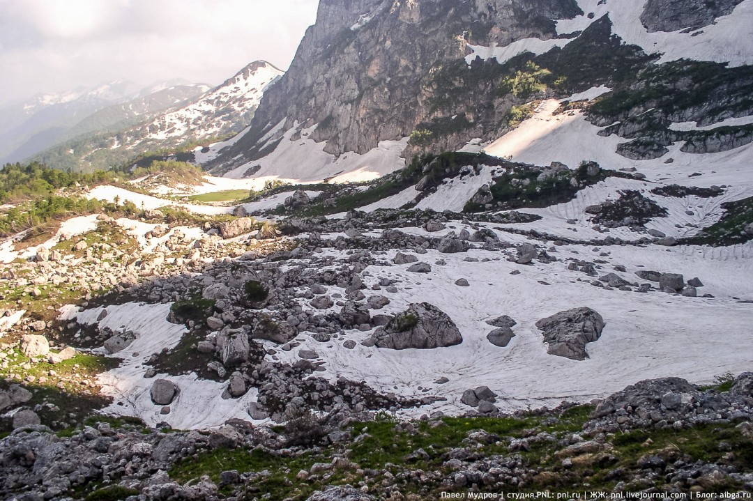 2. Мамевские солонцы. Пшекиш. Апрель. 3. Река Цахвоа. Октябрь. 4. Каменный хаос под Малым Фиштинским ледником. Июнь. 5. Воровские озера в балке Пасечного. Июль. 6. Зубр на Солонцовом хребте. Июль. 7. Долина Верхней Мзымты. Июль. Карта.