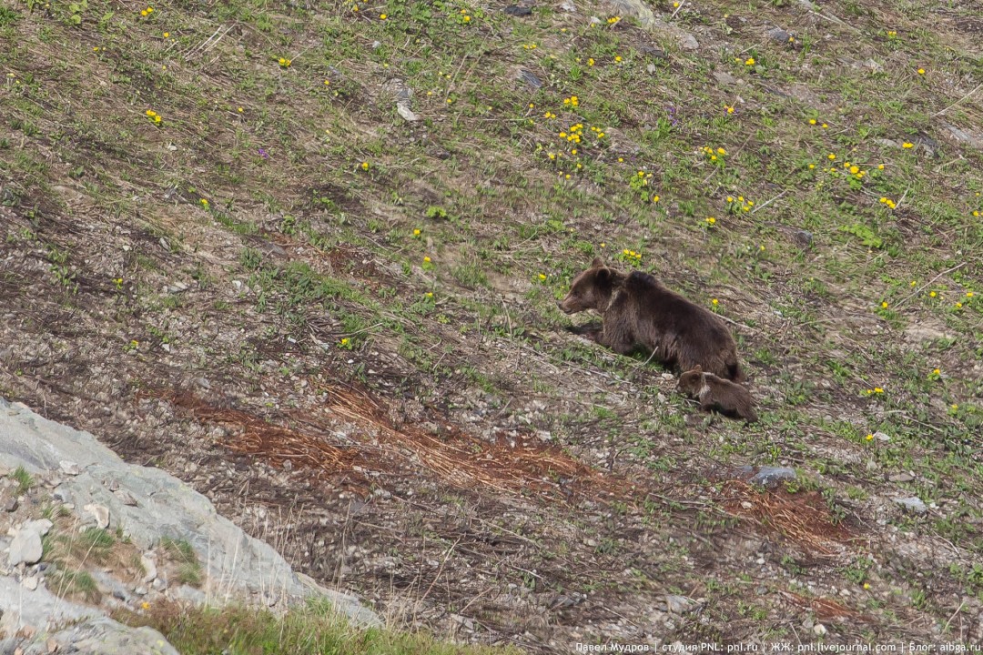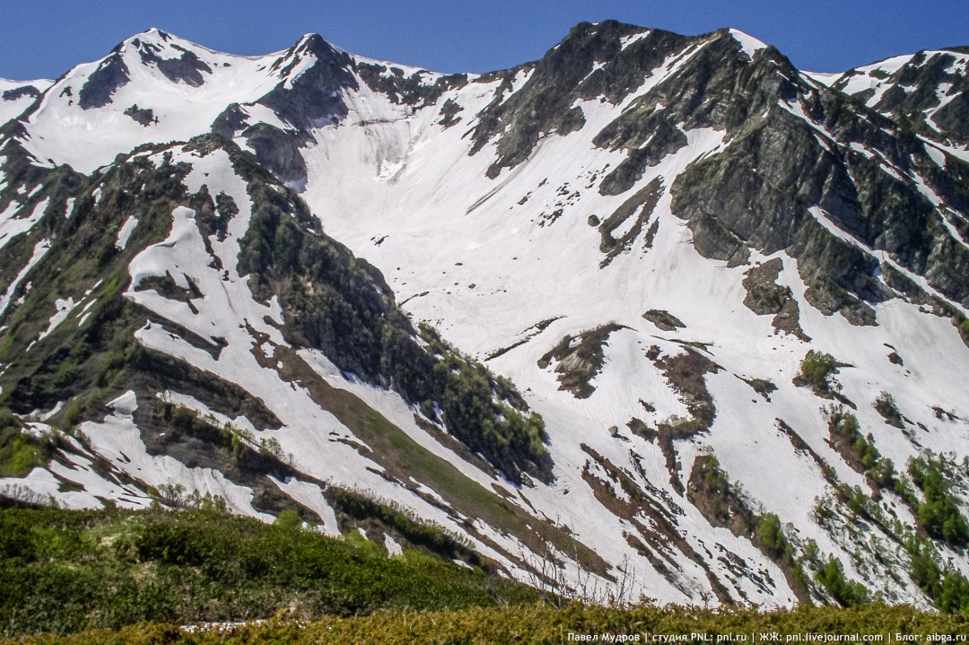 2. Солонец в лесу. Апрель. 3. Вершина Псеашхо Сахарного. Июнь. 4. Дом на Молчепе. Июль. 5. Вид на долину Киши с седловины над Туровым лагерем. Октябрь. 6. Медведица с медвежонком на Ачишхо. Июнь. 7. Западный цирк Ачишхо. Июнь. Карта.