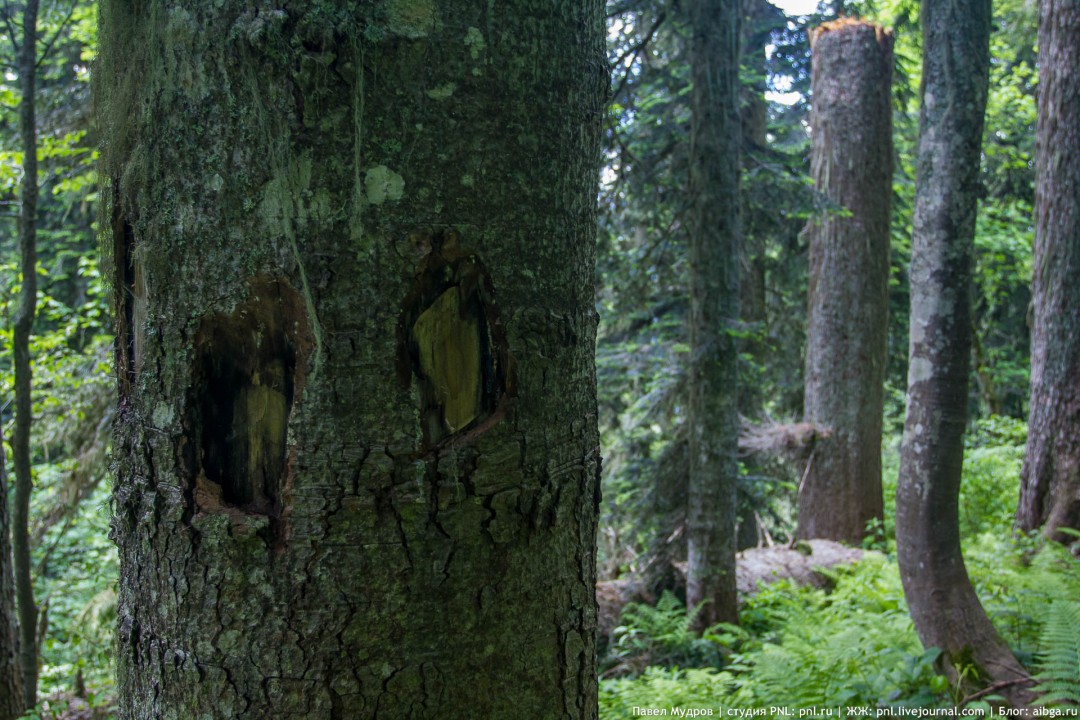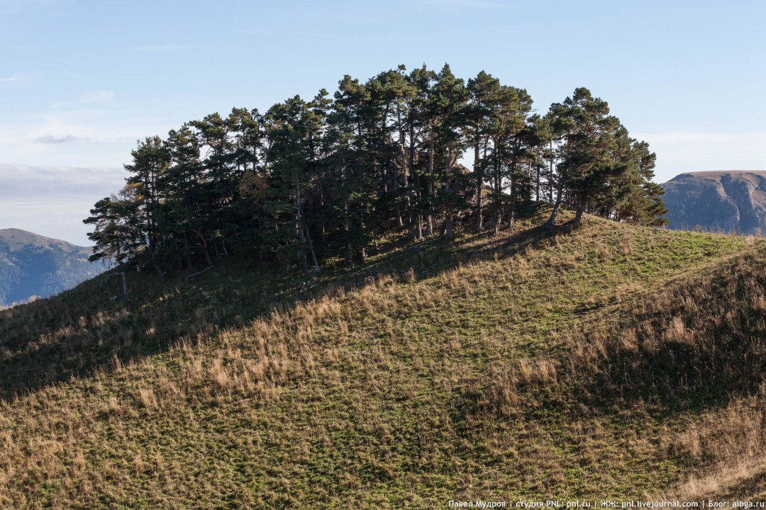 2. Над верховьями Киши. Июнь. 3. Зарубки на старой заросшей тропе, ведущей на южные склоны Малого Чугуша. Июнь. 4. Река Китайка. Октябрь. 5. На кордоне Гузерипль осенью. Сентябрь. 6. Понтийский рододендрон. Июнь. 7. Вершинка, венчающая северную оконечность Орлиного хребта, ощетинилась соснами. Но, кстати - отличная панорамная точка на север. Сентябрь. Карта.