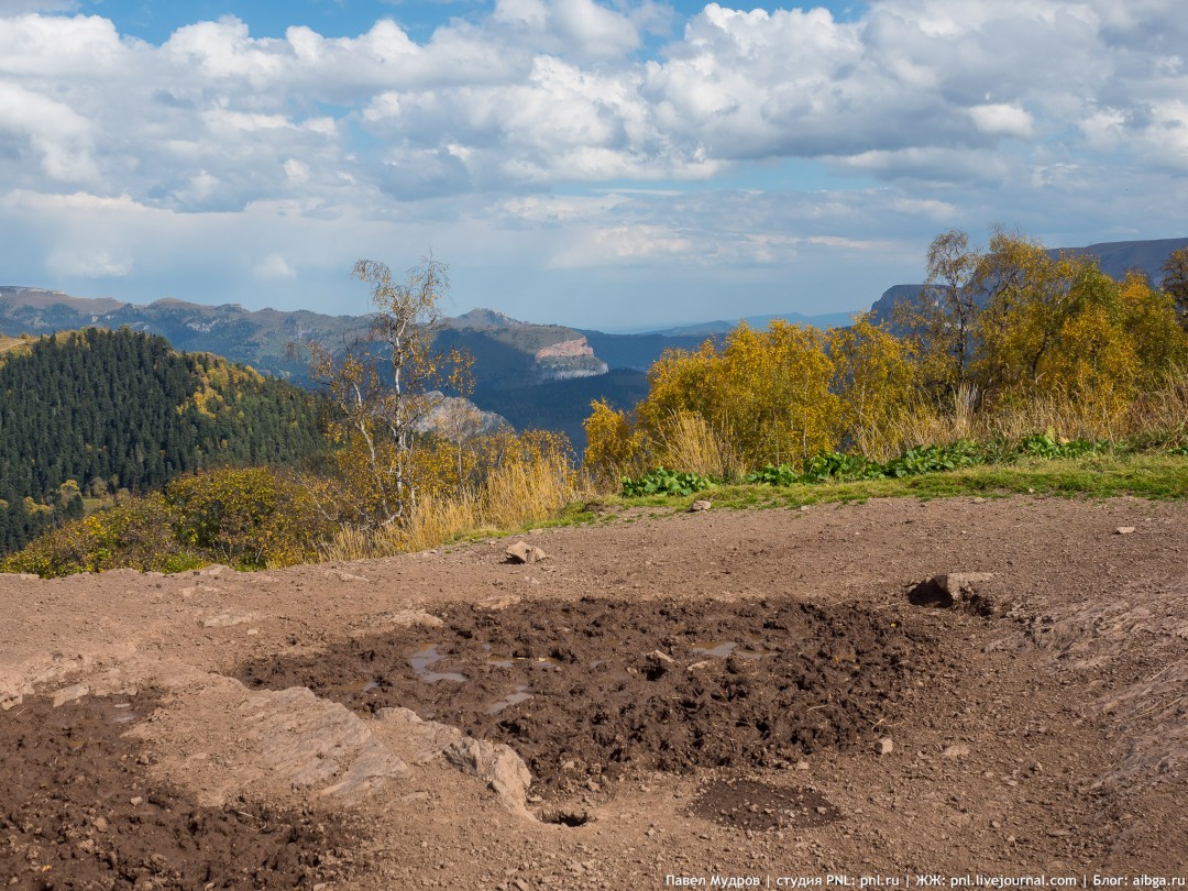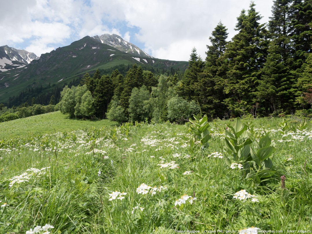 2. Слияние Китайки (слева) и Киши (справа). Октябрь. 3. Западная "мордовская" тропа с Сенного на Джугу. Сентябрь. 4. Главный Кавказский хребет в верховьях ручьев Воробьева, Геоморфологов, так называемая Ассарская пила. Июль. 5. Тропа на Алоус. Июнь. 6. Солонец на Турьем замке (Туриная крепость). Октябрь. 7. Гон оленей. Октябрь. Карта.
